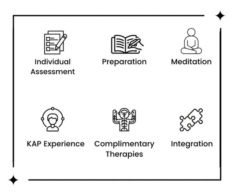 Programming will include two approximately 6-hour days that include movement and breathwork, preparation, KAP group sessions, and integration. We have found group KAP sessions to be powerful experiences for both participants and facilitators, and place a lot of emphasis on restfulness and recovery before, during, and after experiential sessions.